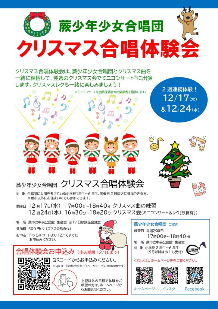 クリスマスならではの体験会。入団を検討されているみなさんにとって、雰囲気を知る絶好のチャンスです。音楽を通じて、広がる世界をぜひ、蕨少年少女合唱団で体験してみてください✨